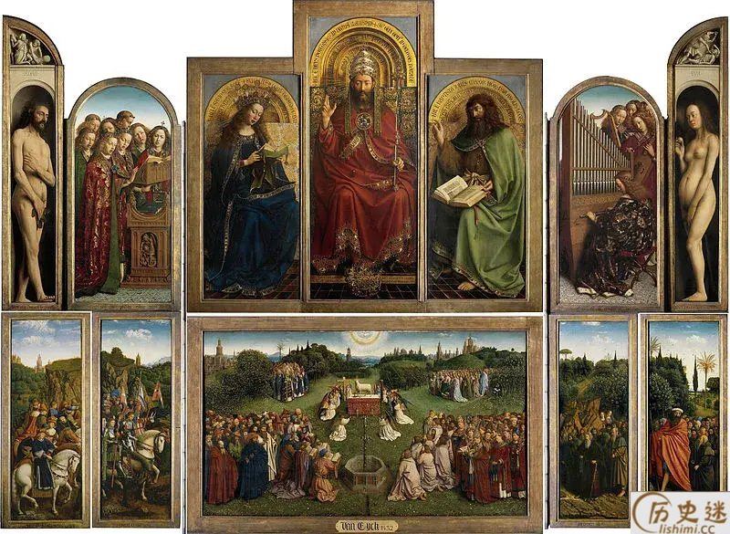 因此,祭坛画就由市长约克多斯-威德委托制作者绘制。放在过去,此类行为大都只属于皇帝、国王、主教和个别的大封建领主。即便在祭坛画绘制的年代,这些人也依旧把持着许多地方的所有权力。唯有在根特这类自治城市,市民阶层才会主动站起来,负担经济发展、文化教育和军事防卫等几乎全部的社会责任。他们的群体代表,也就有了跻身更上流社会的资格。也是在这个阶段,小小的弗兰德斯竟涌现出大量优秀艺术家。如马萨乔、保罗-乌切诺、基兰达奥等初代大师,可谓是开启文艺复兴大门的铁杆主力。根特祭坛画的作者范-艾克兄弟,也是这批艺术家中的典型代表。