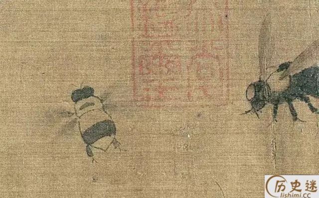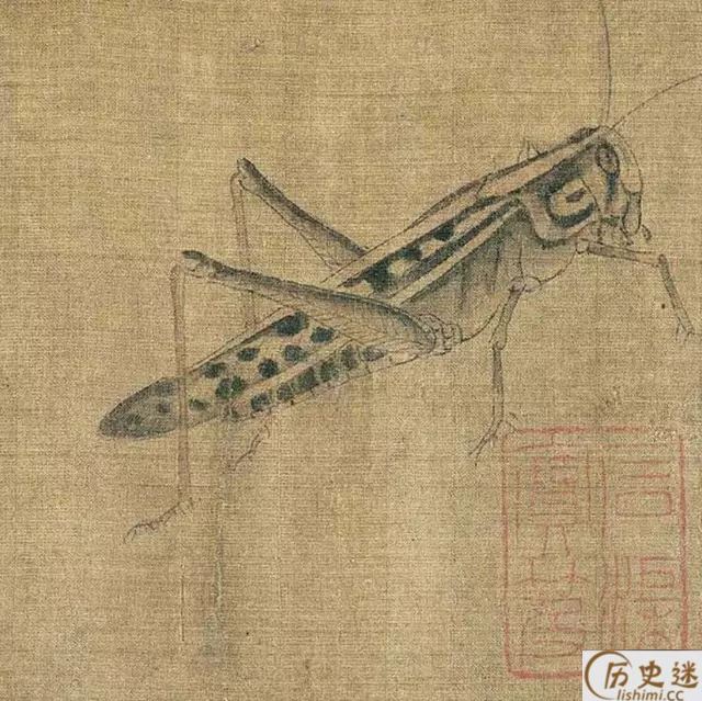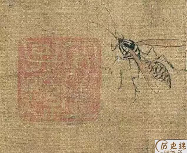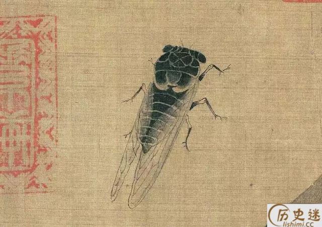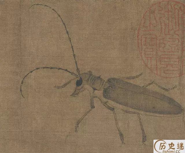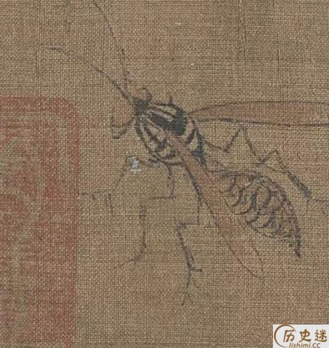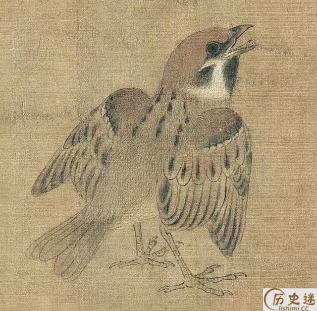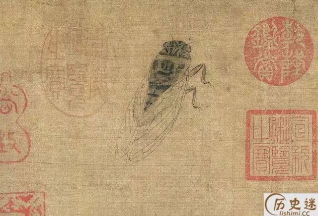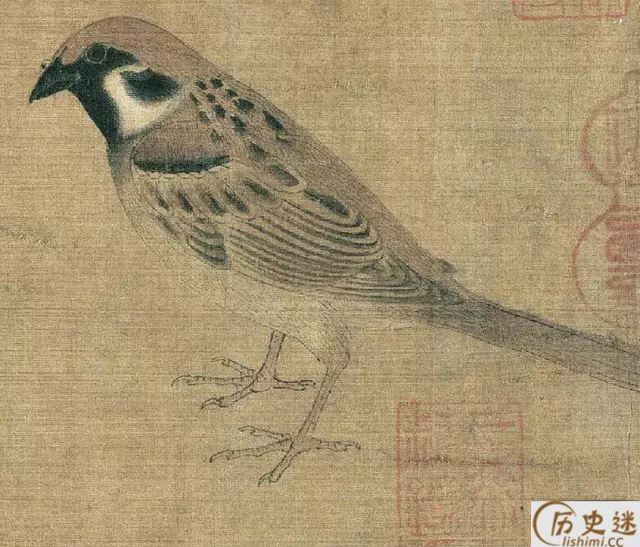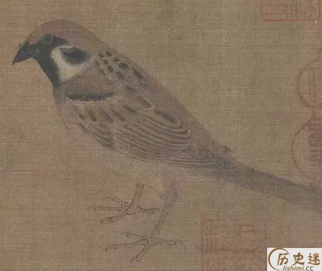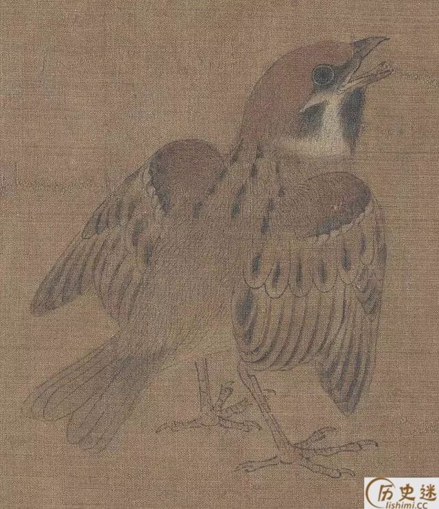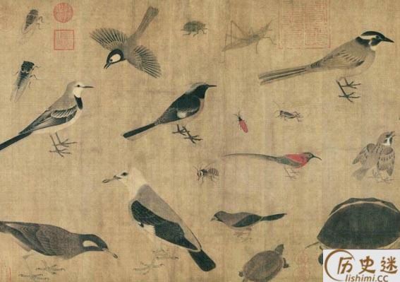 此图描绘了麻雀、鸠、腊嘴、龟、蚱蜢、蝉、蜜蜂、牵牛等二十多种昆 虫、动物,但状态各异,虽然不是一幅完整的构图,却是一幅写生作品。但却有着严格不懈的构图关系所在。《珍禽图》强调真实描绘,重视形似,质感是这一件作品的突出特色。你看那龟壳多么坚硬,似乎可以敲出声来;蝉翼的透明,麻雀展翅欲飞的姿态,都活灵活现。早期花鸟画重视写生,要求严格的写实能力,由此可见一斑。