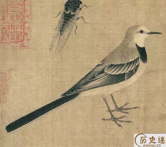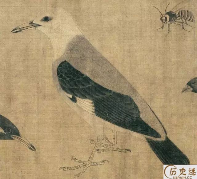 黄筌是五代西蜀时期的著名宫廷画家,擅花鸟、人物、山水、墨竹。《写生珍禽图卷》是他的传世唯一作品,现藏北京故宫博物院,此图共画各类飞禽,昆虫,龟等二十余种。