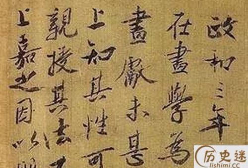 所谓“召入禁中文书库”语义含糊,并未说明是授予他具体的职务,还是给他一份闲差,特许出入宫禁,以便观摩内府所藏先帝宸翰、古今图书。无论如何,有一点是毋庸置疑的事实,即他有充裕的闲暇作画。蔡京的跋文提供了明确的证据:他不仅多次向徽宗献画,而且花费半载光阴绘制了一幅流传至今的山水长卷。按照某些学者的说法,在今天的物质条件下,一名训练有素的专业人士临摹这幅画卷,也需要每天工作八个小时,总计五六个月才能完成。此外,据说这幅画的质地还是极其贵重的“宫绢”,所用的石绿、石青之类矿物颜料也价值不菲。如果“希孟”只是一名文书库小吏,他凭什么放着份内的差事不干,整日调色染翰,沉溺绘事?这显然是一种非常人所能享有的特殊待遇。非但如此,徽宗还亲自传授画法,使之成为真正意义上的“天子门生”。所谓“其性可教”不足以作为徽宗对“希孟”格外青睐的理由。可以设想,在皇家创办的画学之中,经过层层选拔,必定不乏天资聪颖、有心向学的俊异之才。如果因为“其性可教”,徽宗便要一一“诲谕”,岂不忙煞这位风流道君?联系前文提出的问题,我们不能不怀疑徽宗与这位年青画家之间有着非同一般的关系。
